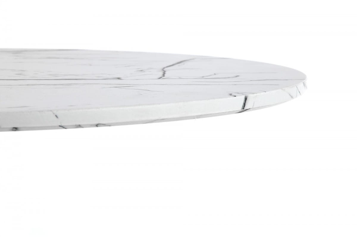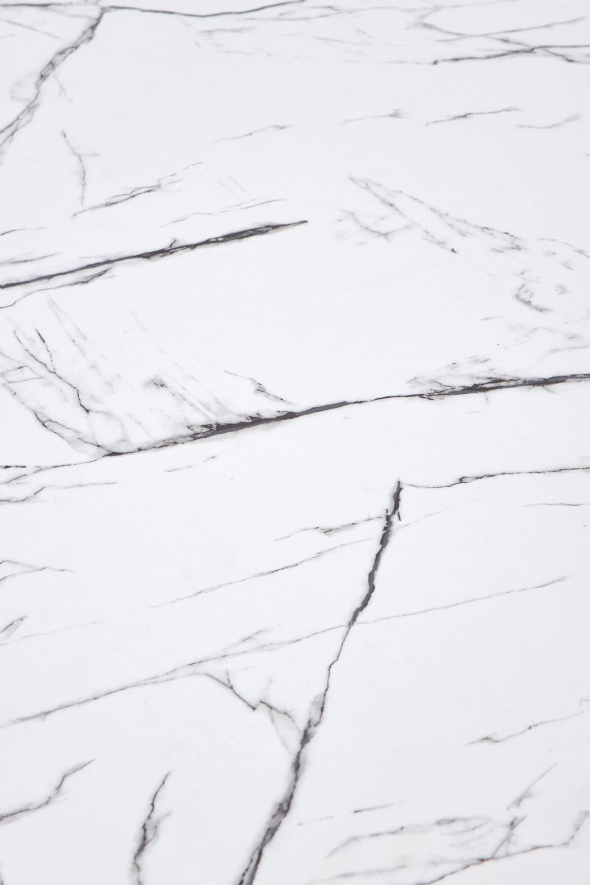 Materiał: Blat stołu DENVER wykonany jest z MDF okleinowanego, który jest trwały i łatwy do czyszczenia, a także posiada wykończenie, które naśladuje biały marmur dla eleganckiego wyglądu. Nogi stołu wykonane są z stali malowanej proszkowo, co zapewnia jego stabilność i długotrwałą trwałość.
