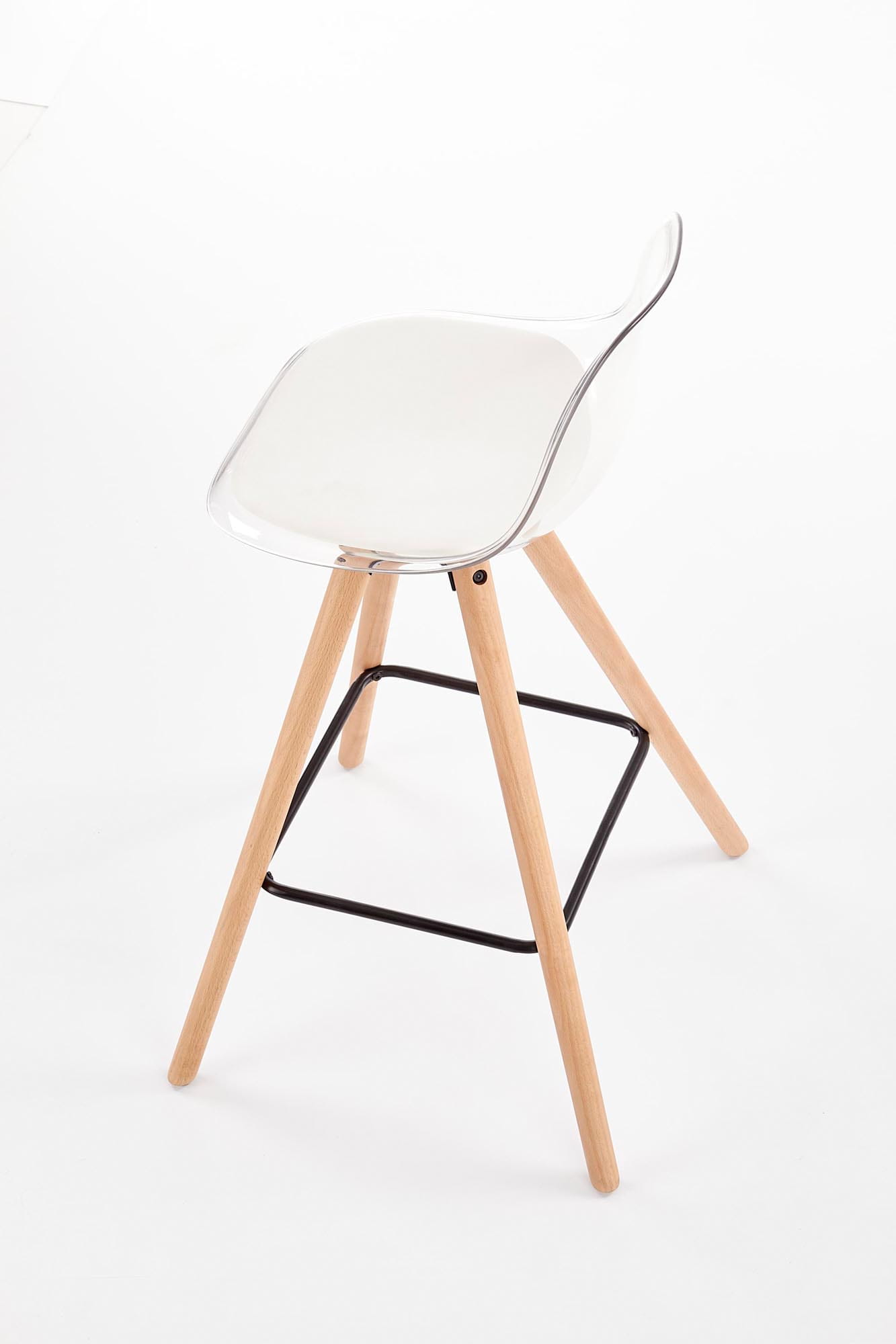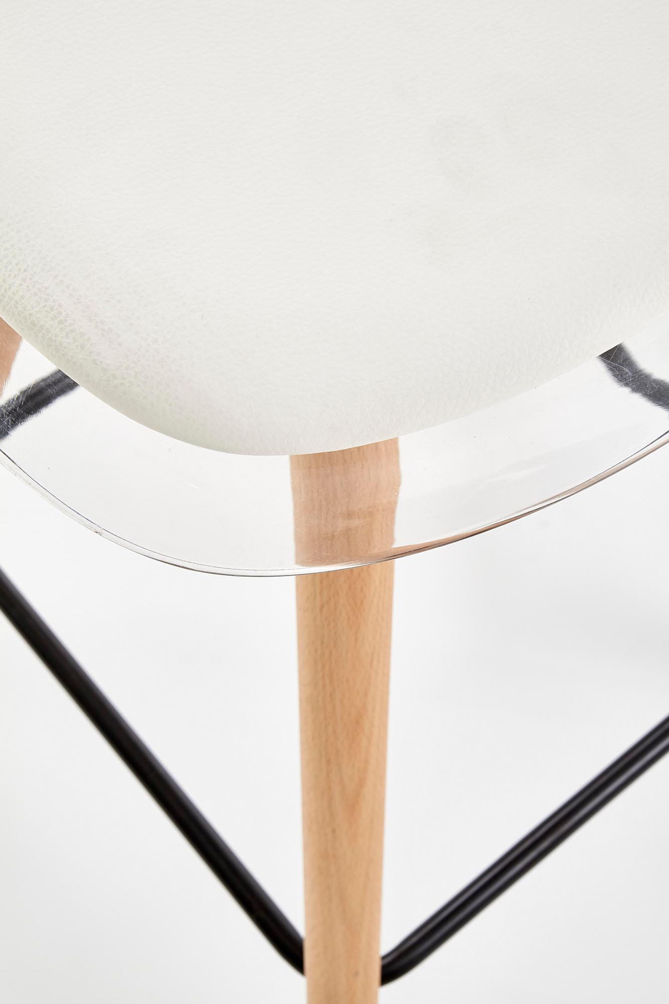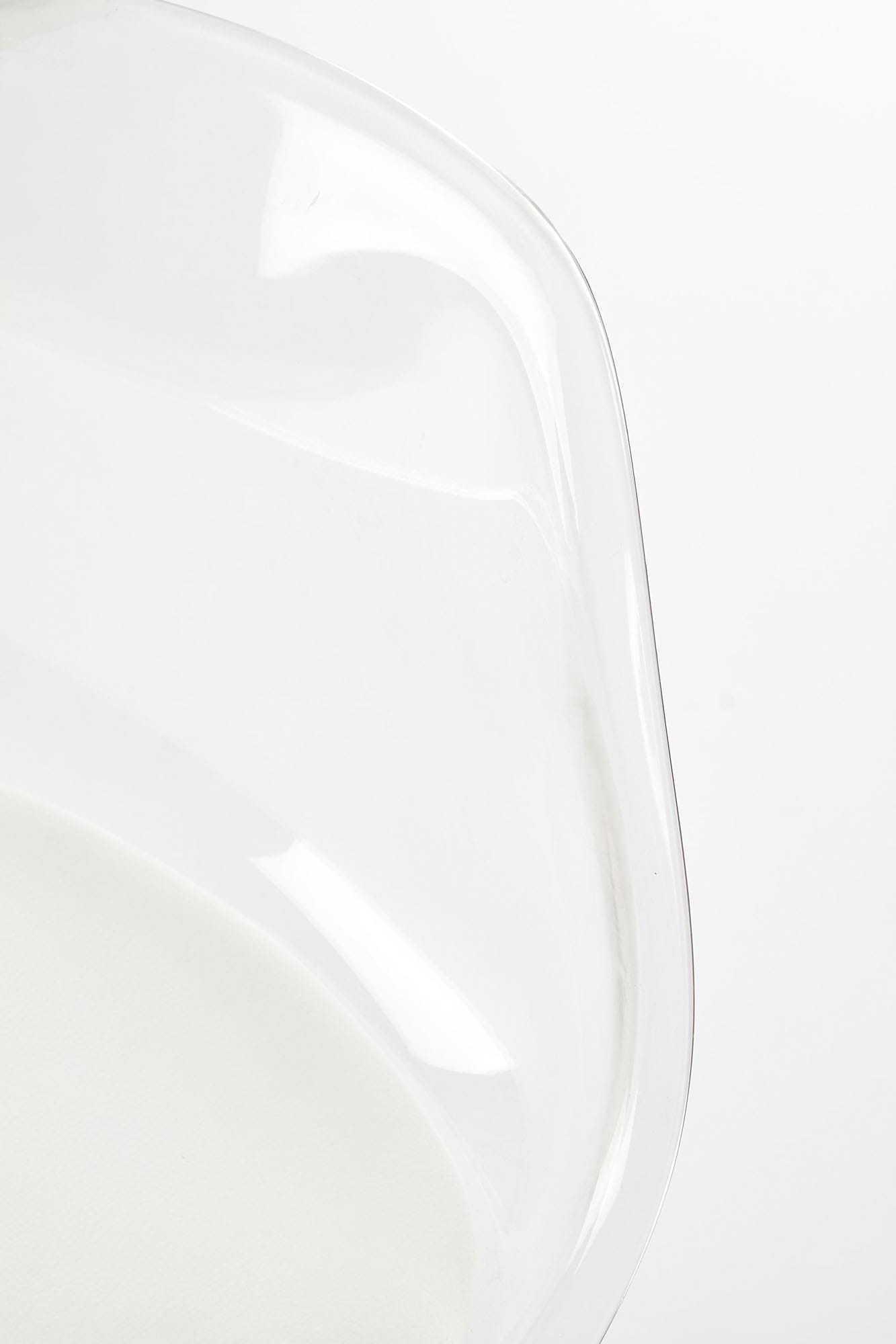 wymiary: 38/48/95/74 cm, materiał: poliwęglan / eco skóra / drewno lite / stal malowana proszkowo, kolor: transparentny / biały, nogi - naturalny