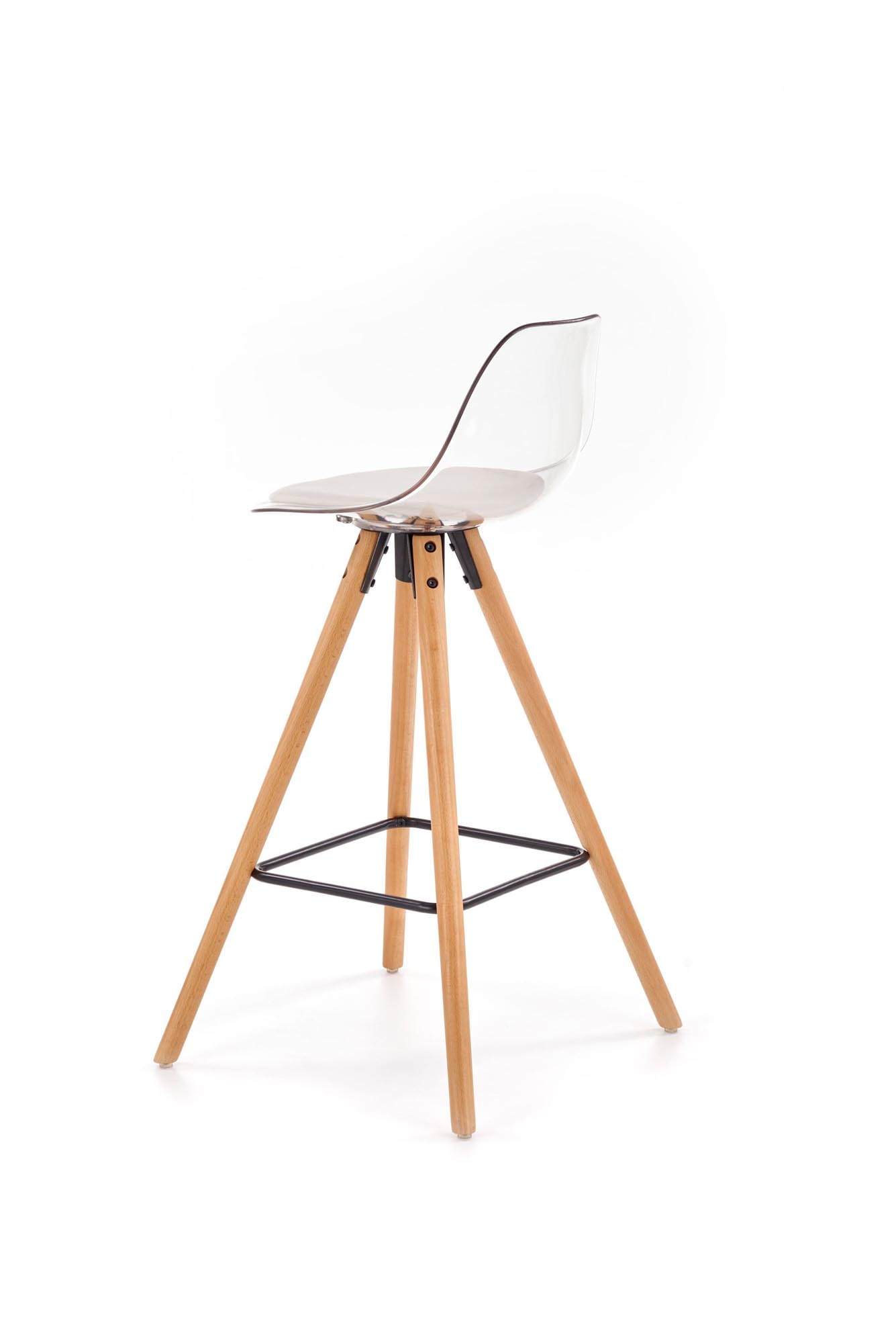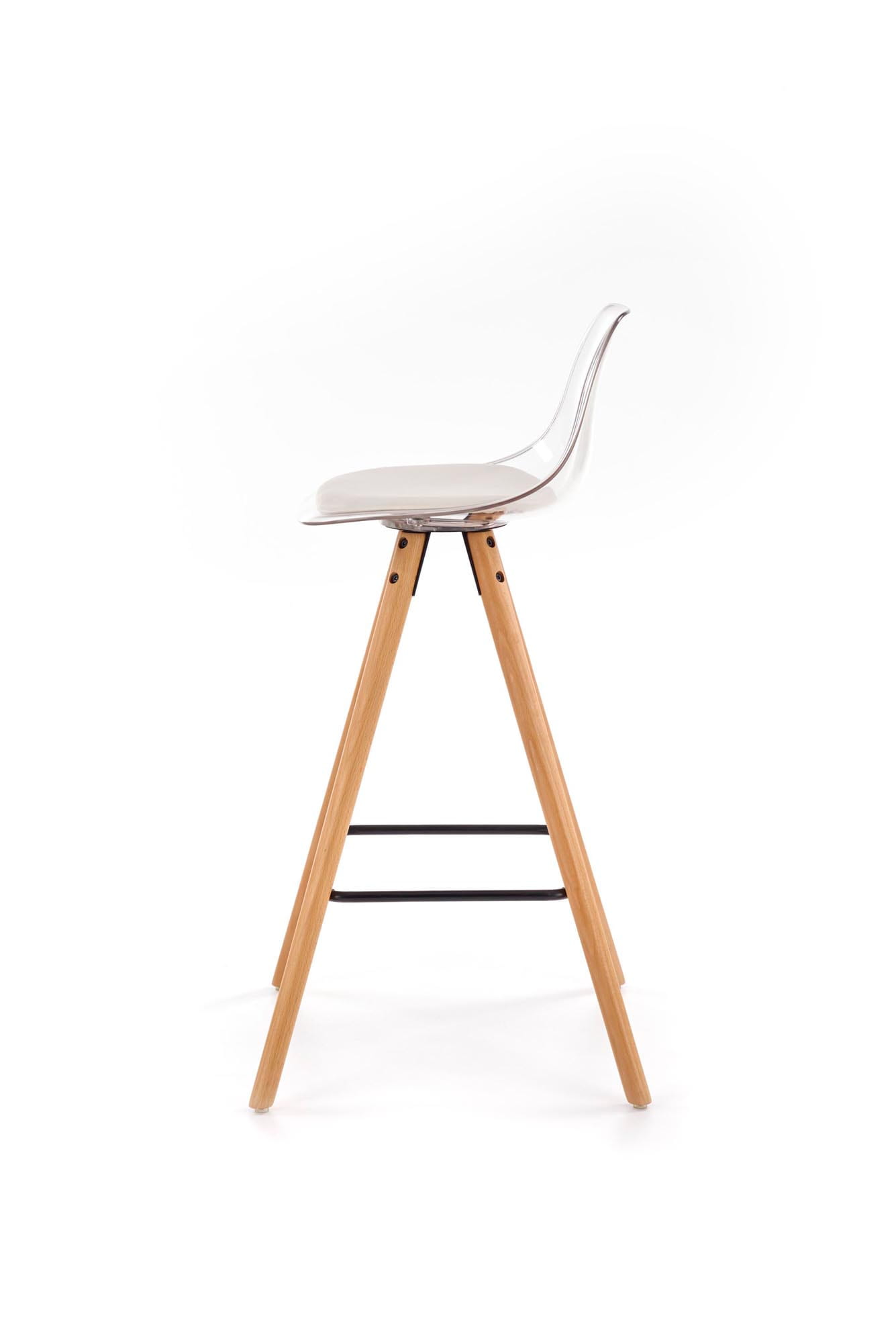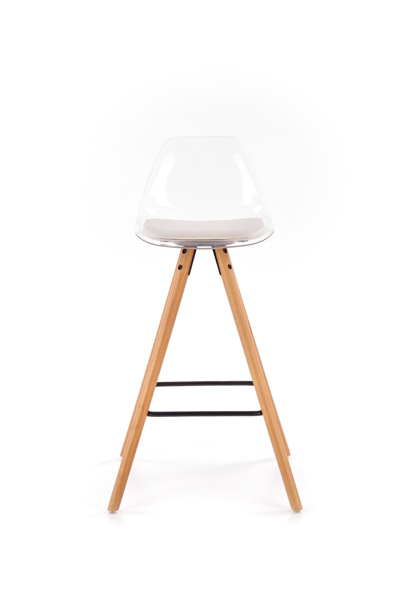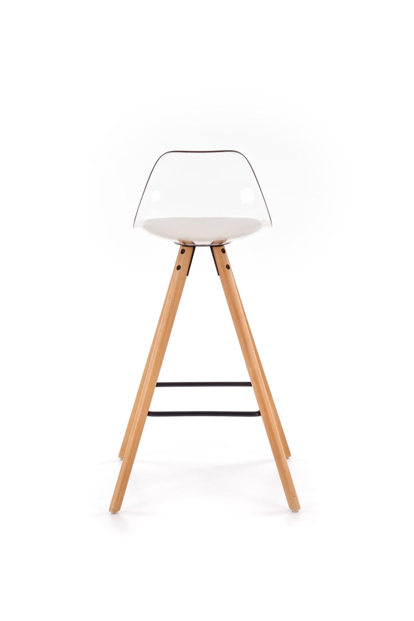 wymiary: 38/48/95/74 cm, materiał: poliwęglan / eco skóra / drewno lite / stal malowana proszkowo, kolor: transparentny / biały, nogi - naturalny