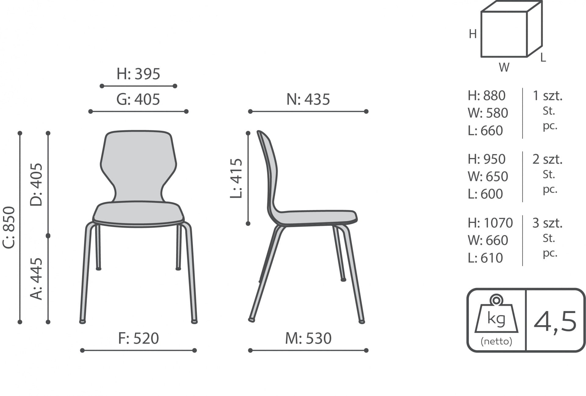 | Dystanse zabezpieczające przed zarysowaniem podczas sztaplowania do wersji 1N (dla krzeseł z łącznikiem) | DN | ○ |