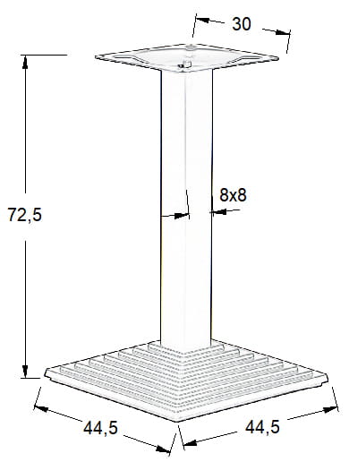 noga o wymiarach 8x8 cm wykonana ze stali malowanej proszkowo, grubość ścianki 1,2 mm