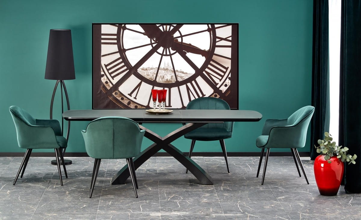 SILVESTRO stół rozkładany Halmar blat - ciemny popiel, noga - czarny