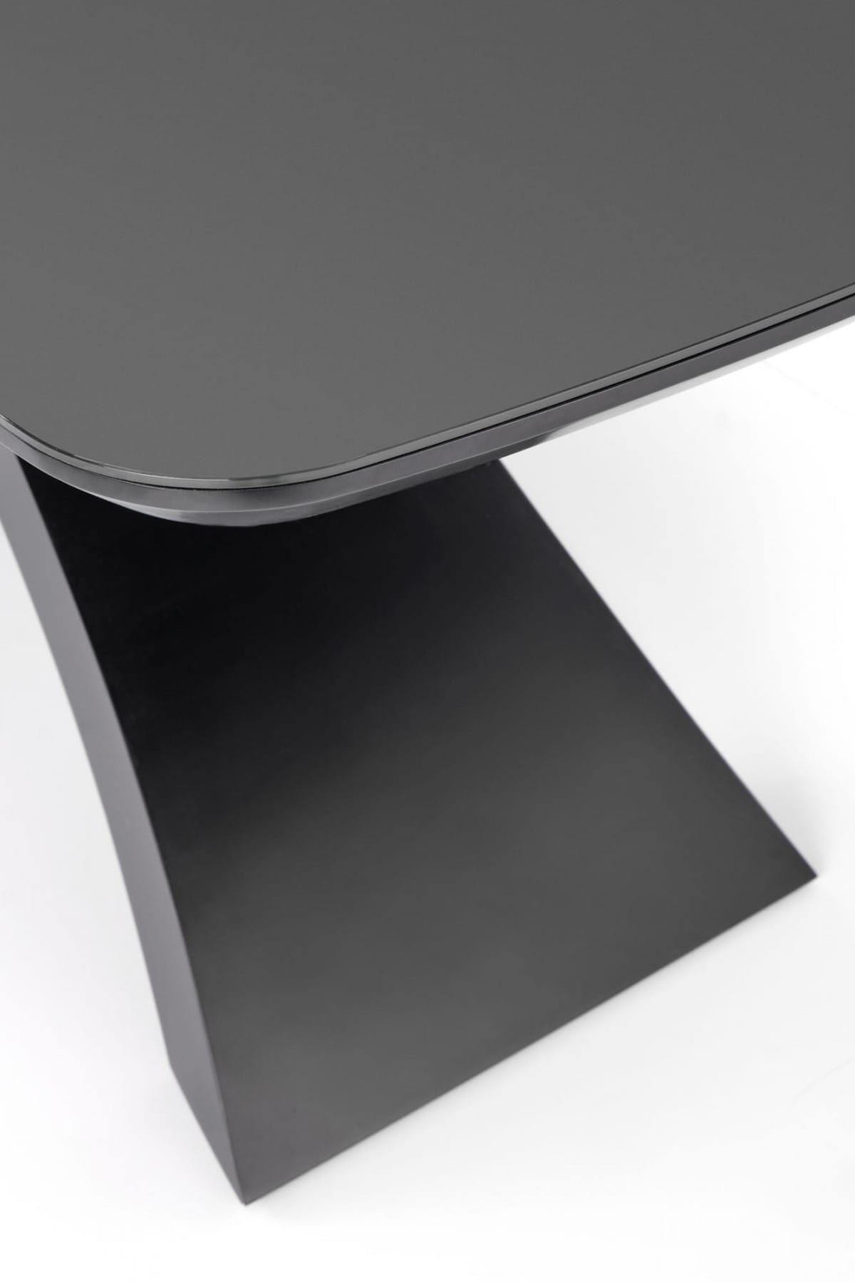 Blat stołu wykonany ze szkła o kolorze ciemnego popiela prezentuje się bardzo nowocześnie i dodaje wnętrzu lekkości. Kontrastową bazę stanowi noga z MDF lakierowanego na kolor czarny, która nadaje stołu stabilność i wytrzymałość.