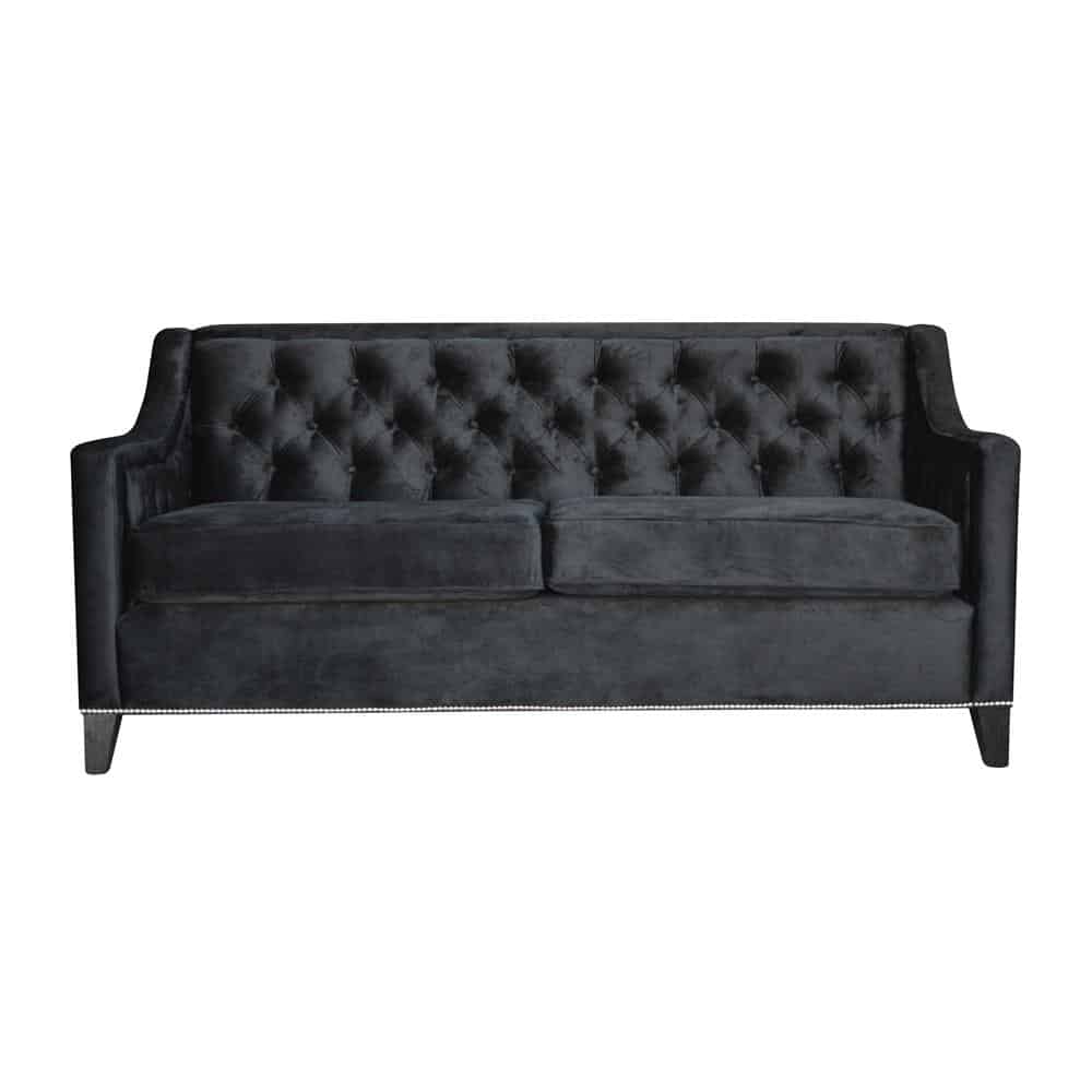 Sofa w wersji standardowej posiada pikowania w oparciu i przeszycia w bokach