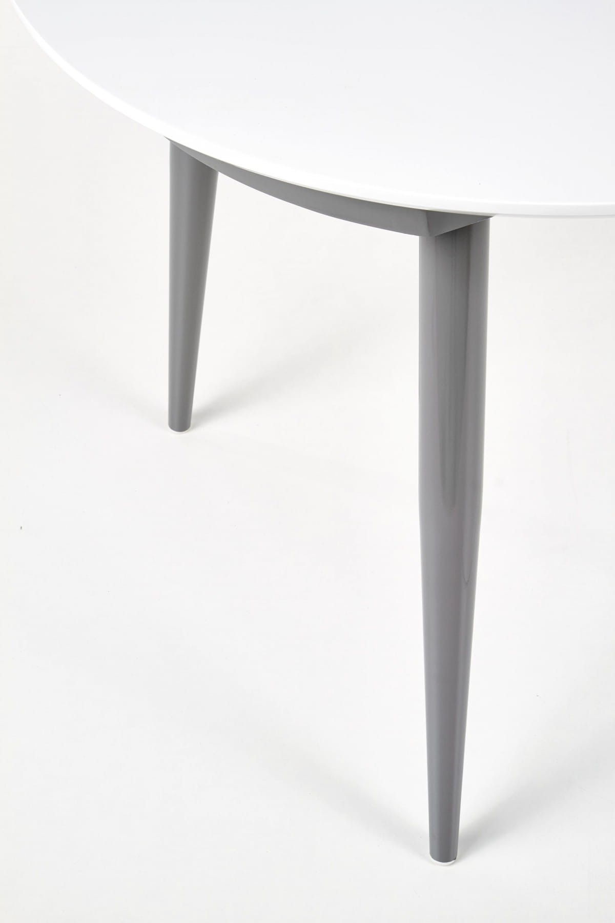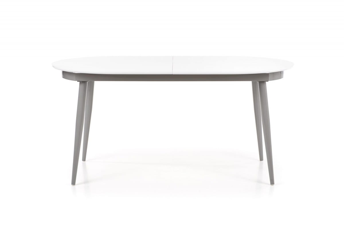 stół rozkładany, wymiary: 160-200/90/76 cm, materiał: MDF lakierowany / stal malowana proszkowo, kolor: blat - popiel, nogi - białe