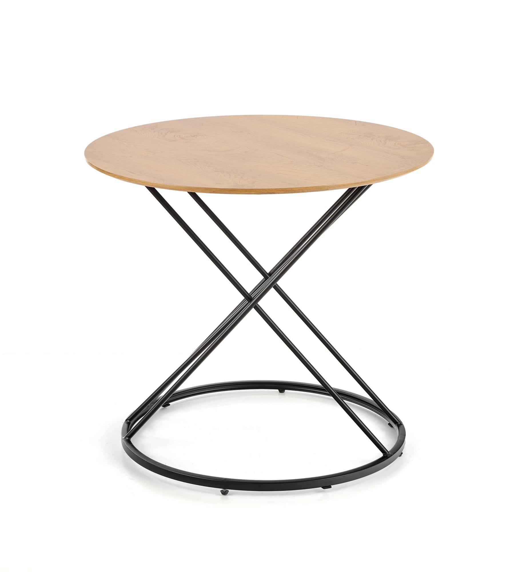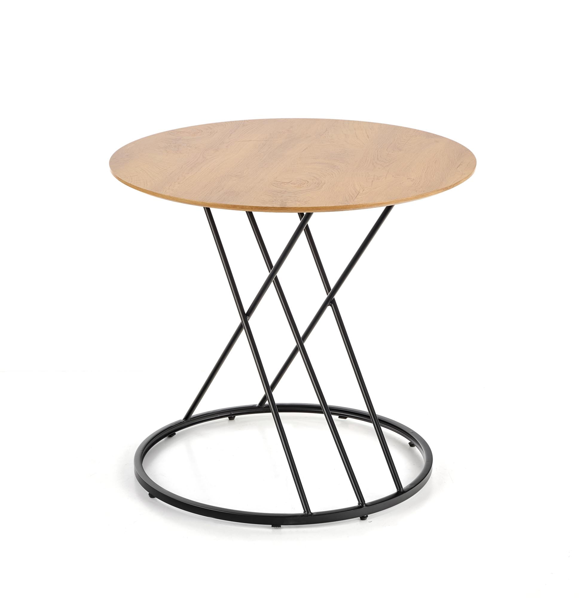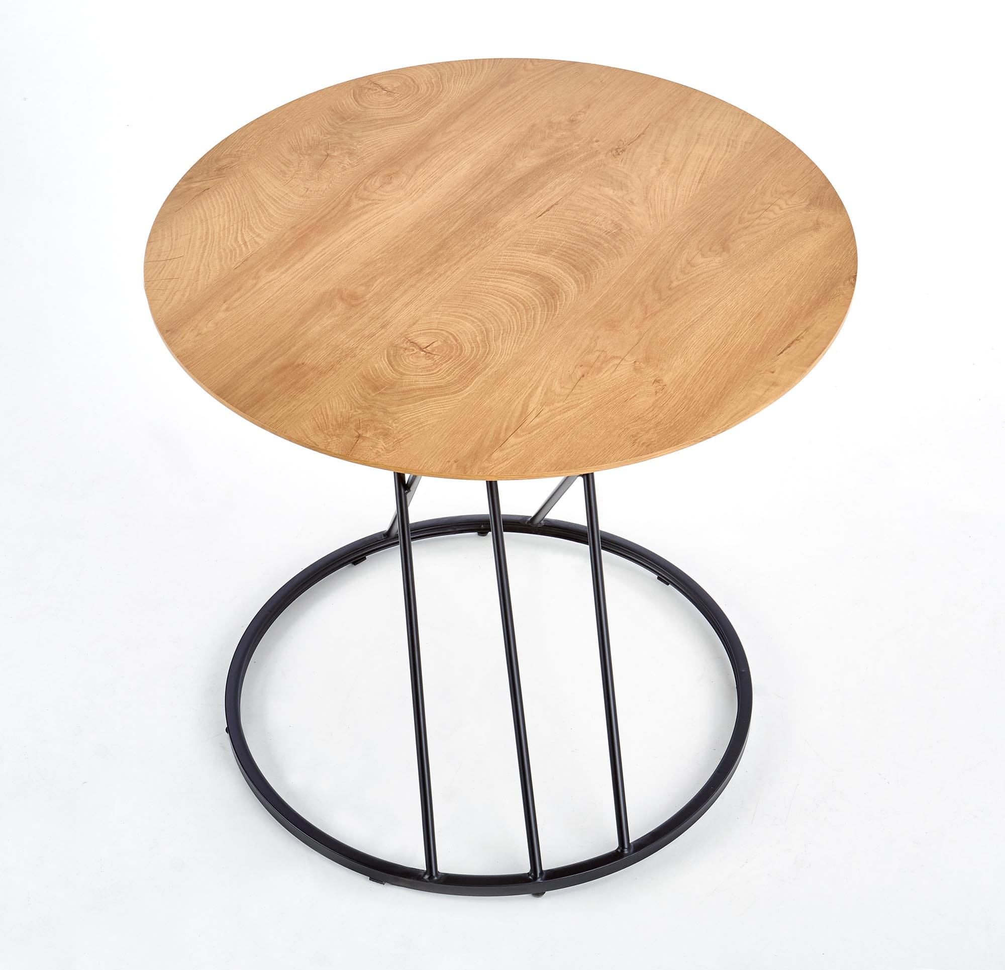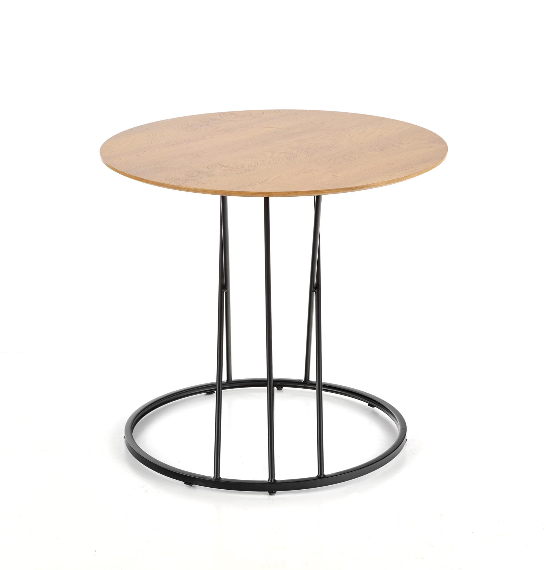 wymiary: o80/72 cm, materiał: MDF okleinowany / stal malowana proszkowo, kolor: blat - dąb naturalny, nogi - czarny