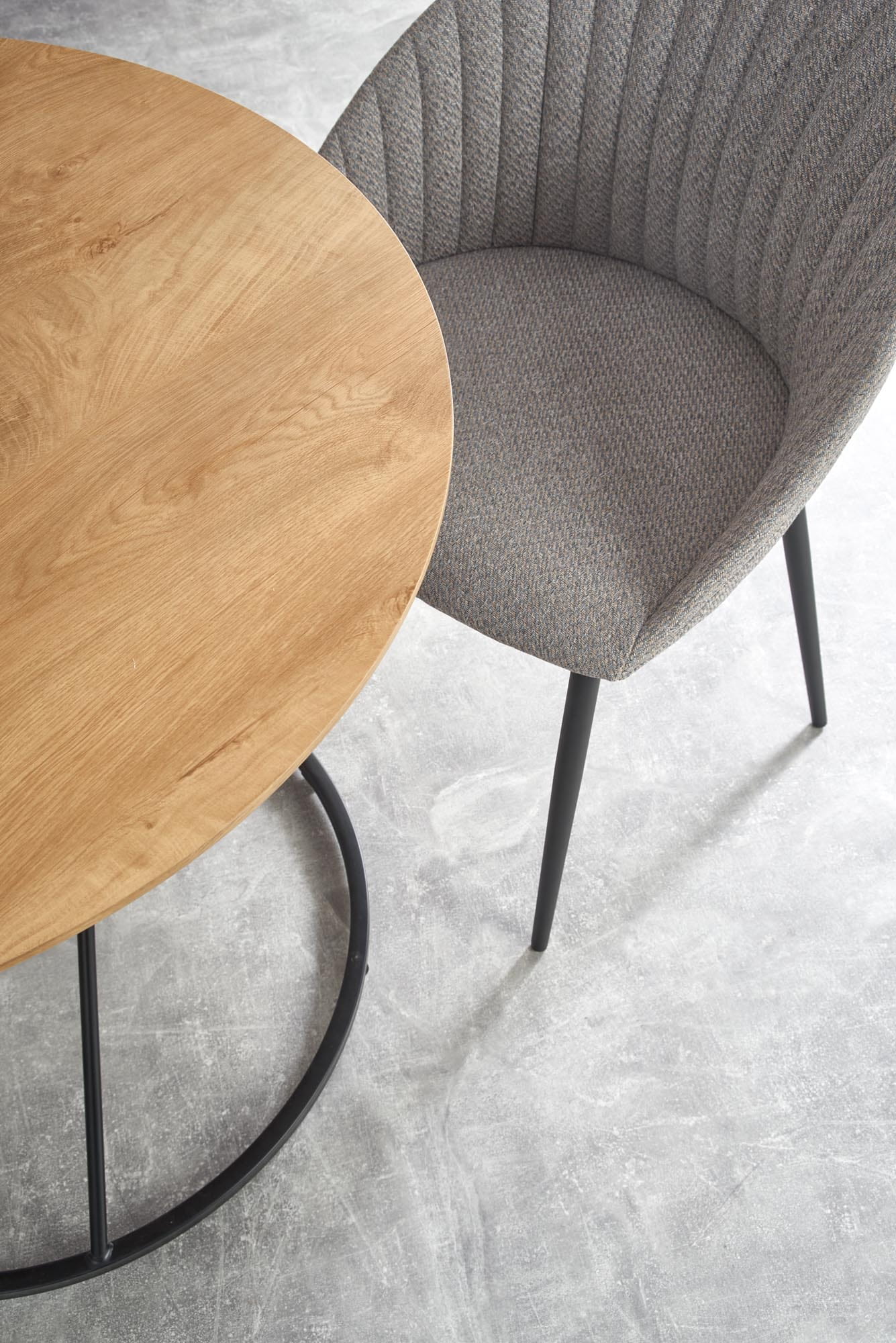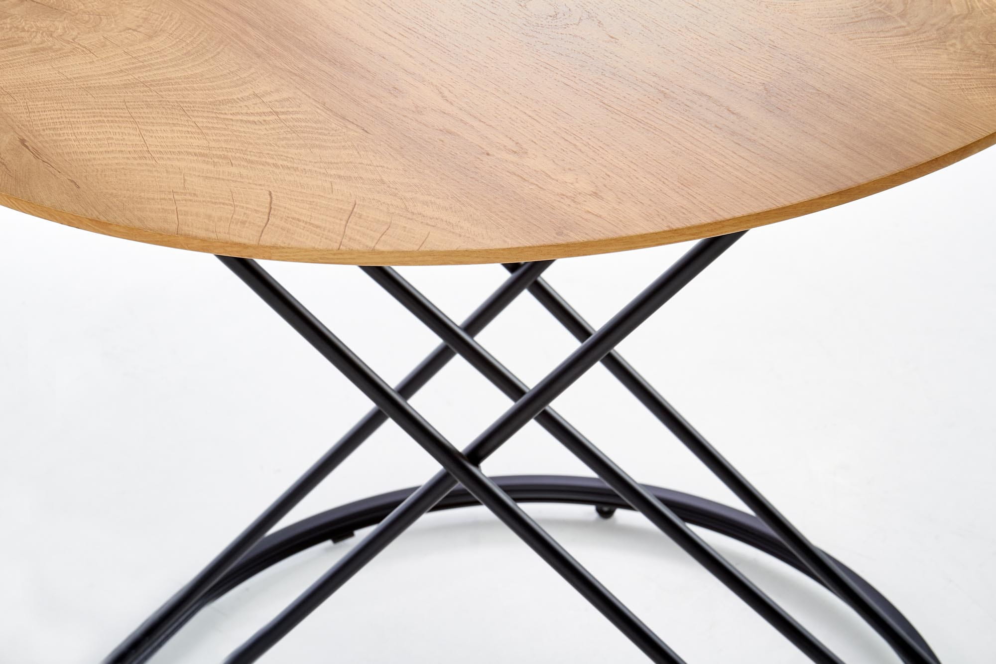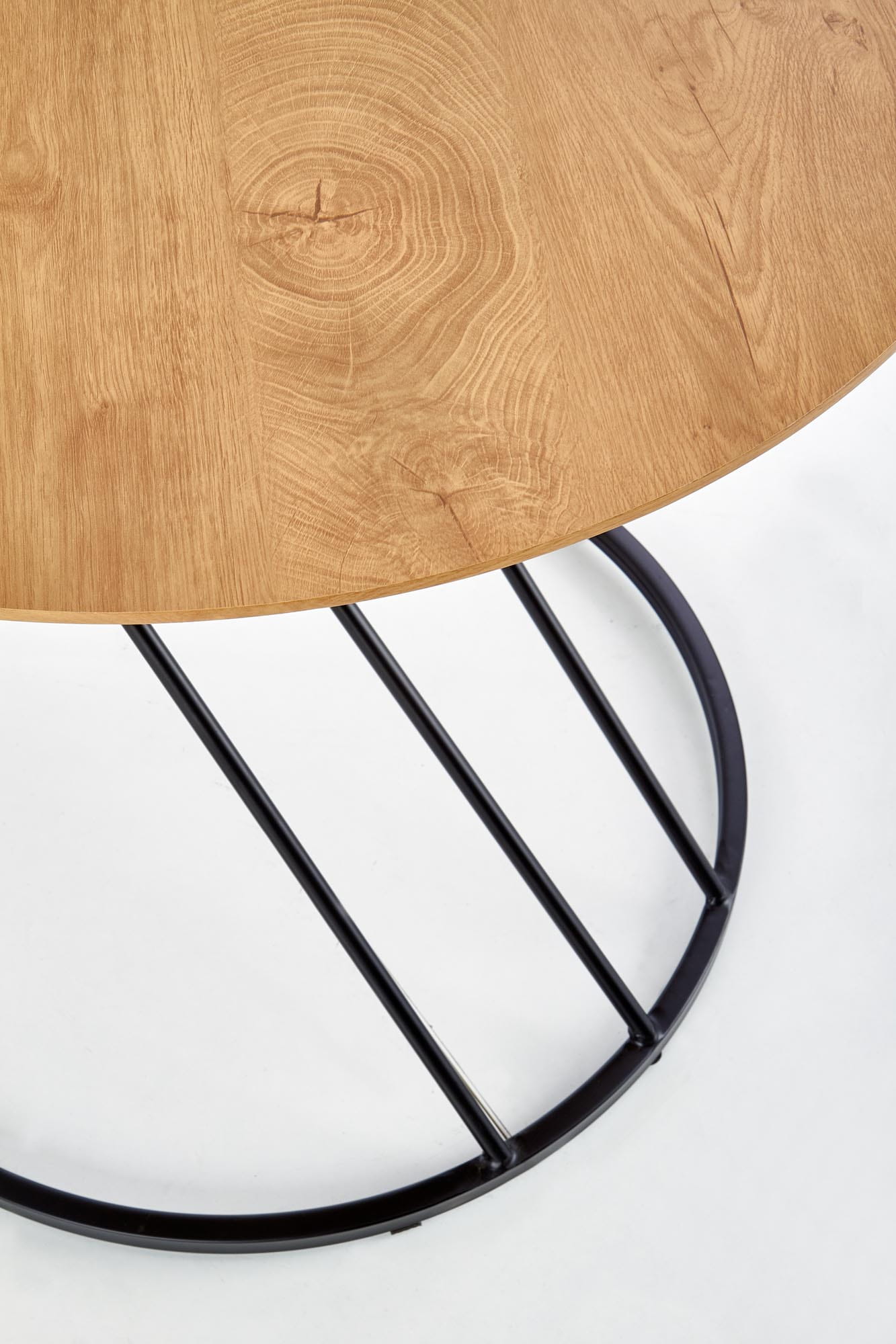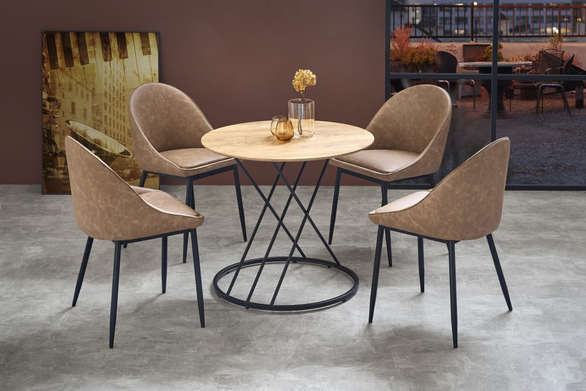 wymiary: o80/72 cm, materiał: MDF okleinowany / stal malowana proszkowo, kolor: blat - dąb naturalny, nogi - czarny