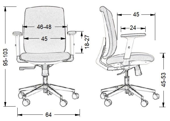 podłokietniki regulowane (góra-dół) z miękkimi (poliuretanowymi) nakładkami