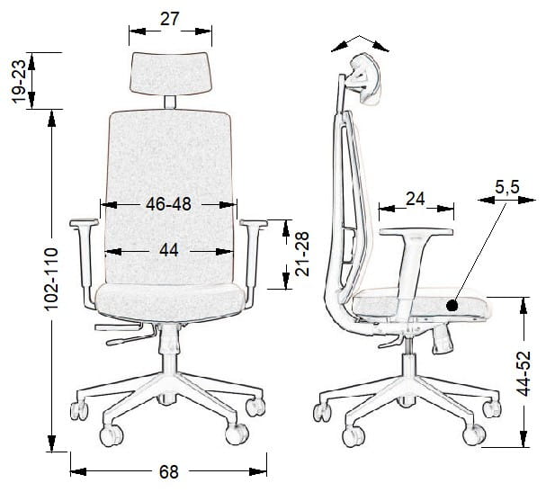 podłokietniki regulowane (góra-dół) z miękkimi (poliuretanowymi) nakładkami