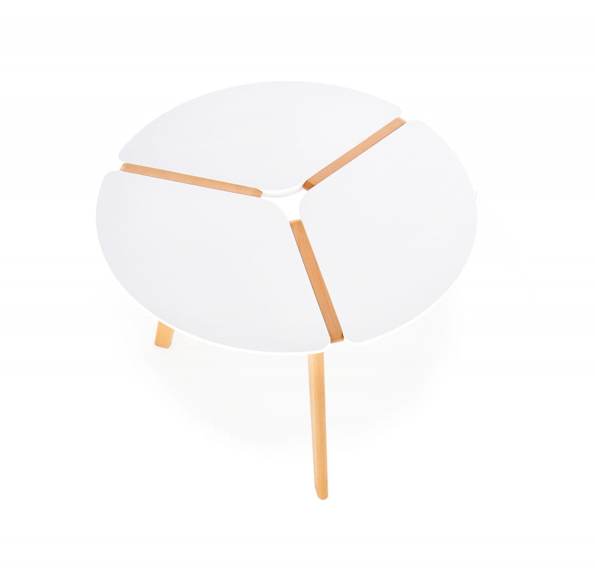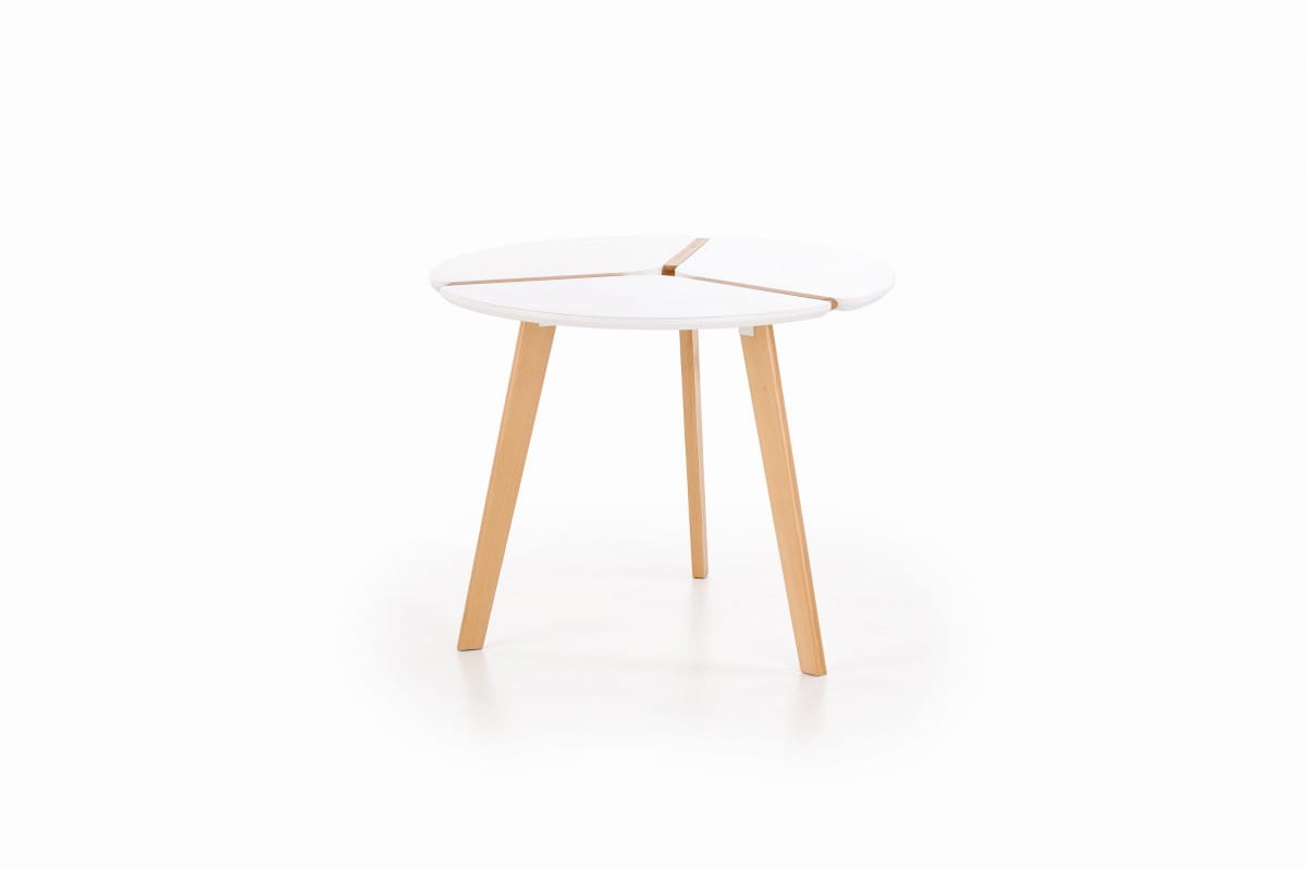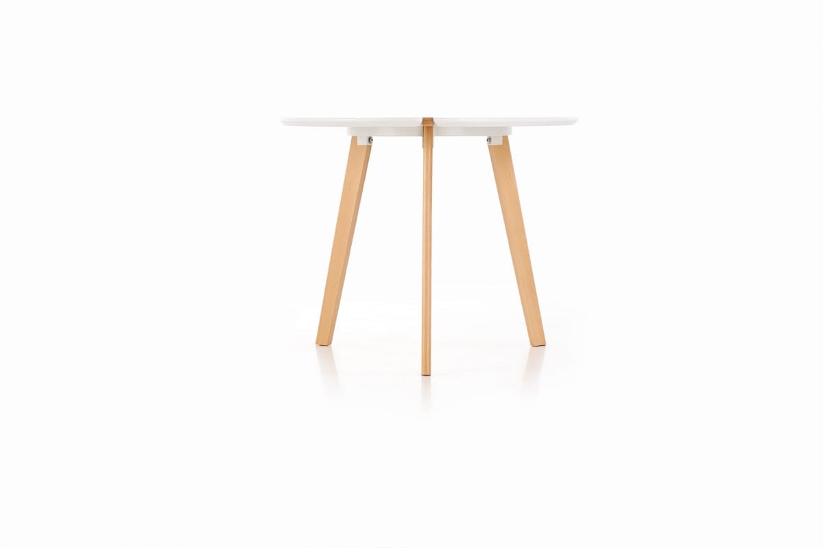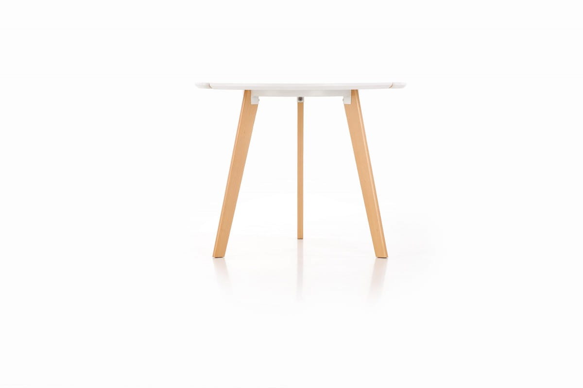 wymiary: O90/76 cm, materiał: MDF lakierowany / drewno lite, kolor: blat - biały mat, nogi - buk