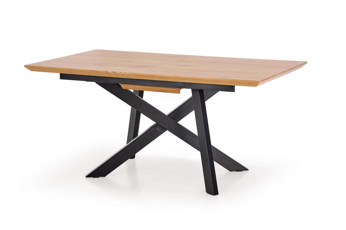 stół rozkładany, wymiary: 160-200/90/76 cm, materiał: MDF laminowany / stal malowana proszkowo, kolor: dąb złoty - czarny